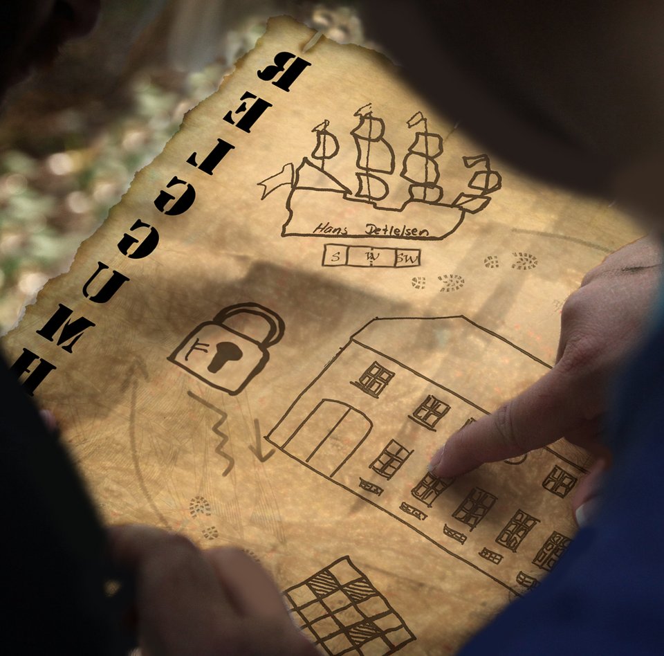Du hast einen rätselhaften Plan mit vier Objekten und geheimnisvollen Zeichen gefunden – in der Mitte ist das Flensburger Schifffahrtsmuseum abgebildet. Was mag das wohl für eine Karte sein? Du bist fest entschlossen, das herauszufinden. Gemeinsam mit deinen Freunden schleichst du dich an einem Ruhetag ins Museum.